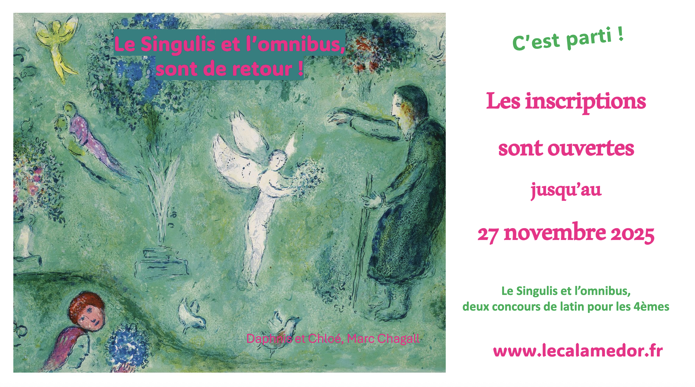Les inscriptions des classes, ouvertes aux adhérents de l’association, se font sur l’espace participant jusqu’au 27 novembre 2025 à 22h ; les travaux devront être déposés avant le 31 janvier 2026 à midi.