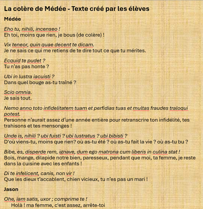 Il reste que les élèves ont pleinement adhéré au projet ; ils disent s’être beaucoup amusés tout en découvrant de nombreux textes. D’abord timides dans leur expression de la colère, ils ont in fine, de travail d’écriture en travail d’écriture, manié la syntaxe et le lexique latins de la colère avec aisance, bien plus qu’en langue française !