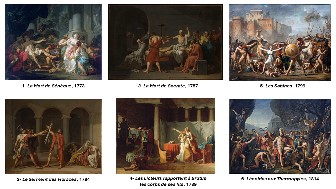- Scènes de foule : les Sabines, Serment du jeu de Paume, Léonidas, sacre de Napoléon :